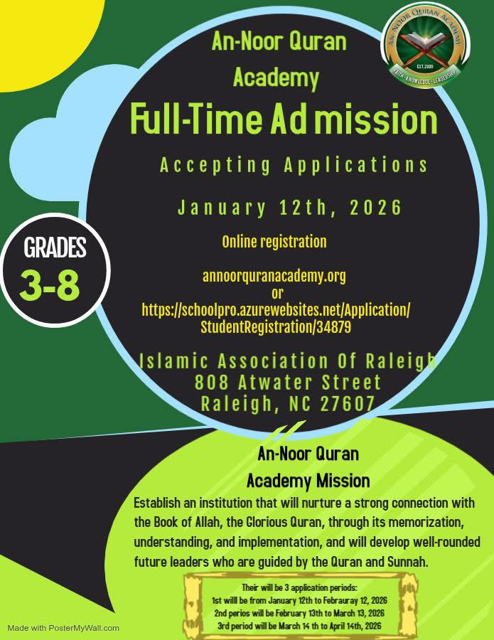 Dear respected brothers/sisters of the Triangle Muslim Community,