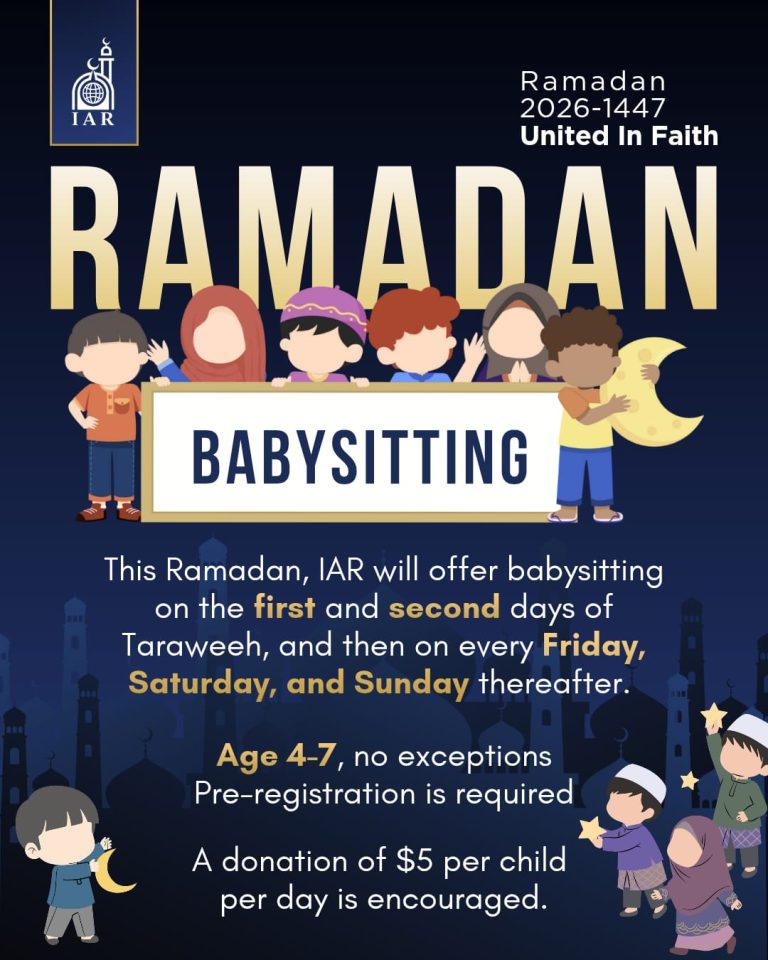 Your IAR masjid wishes you all a blessed month of Ramadan. We pray that Allah SWT accepts your Qiyam, Salah, and Fasting in this blessed month.