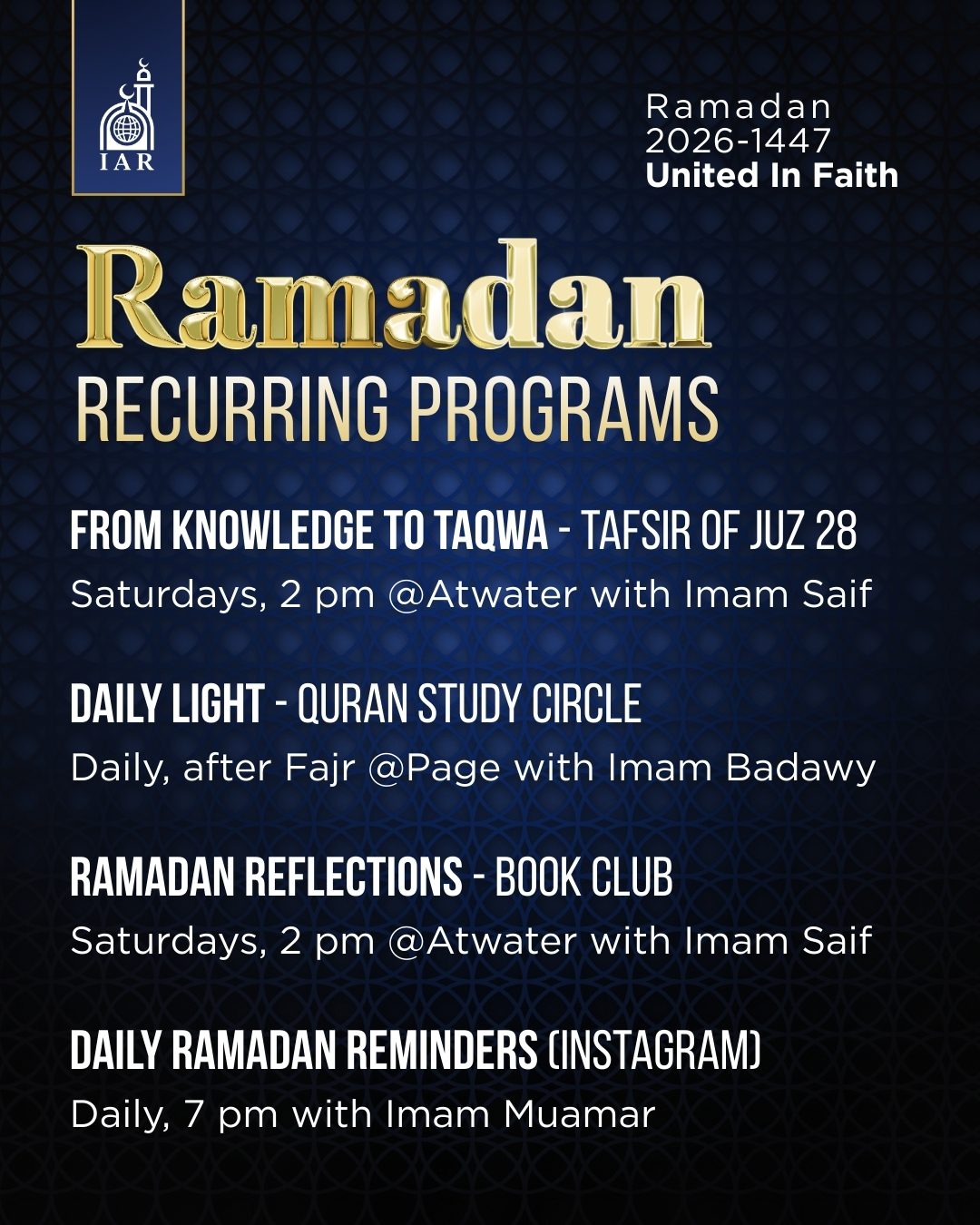Khatm al-Quran will be on Wednesday, March 18, 2026. Join us as we complete the recitation of the Quran.